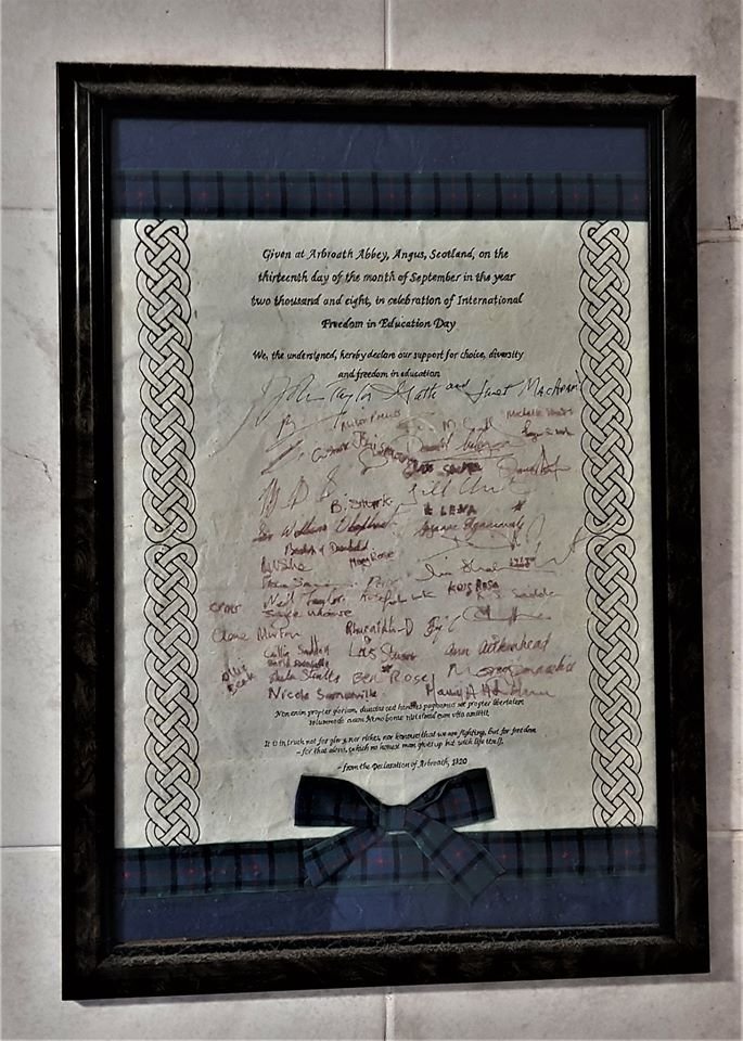 He signed our Declaration of Freedom in Education at the famous Abbey (also on behalf of his wife Janet who has Scots ancestry) and was very taken by the pageantry. He was also personally thrilled to visit his family archive in Inverbervie and very much enjoyed his visit to the Ramsay Arms in Fettercairn. We sent him home with a bottle of the local malt.